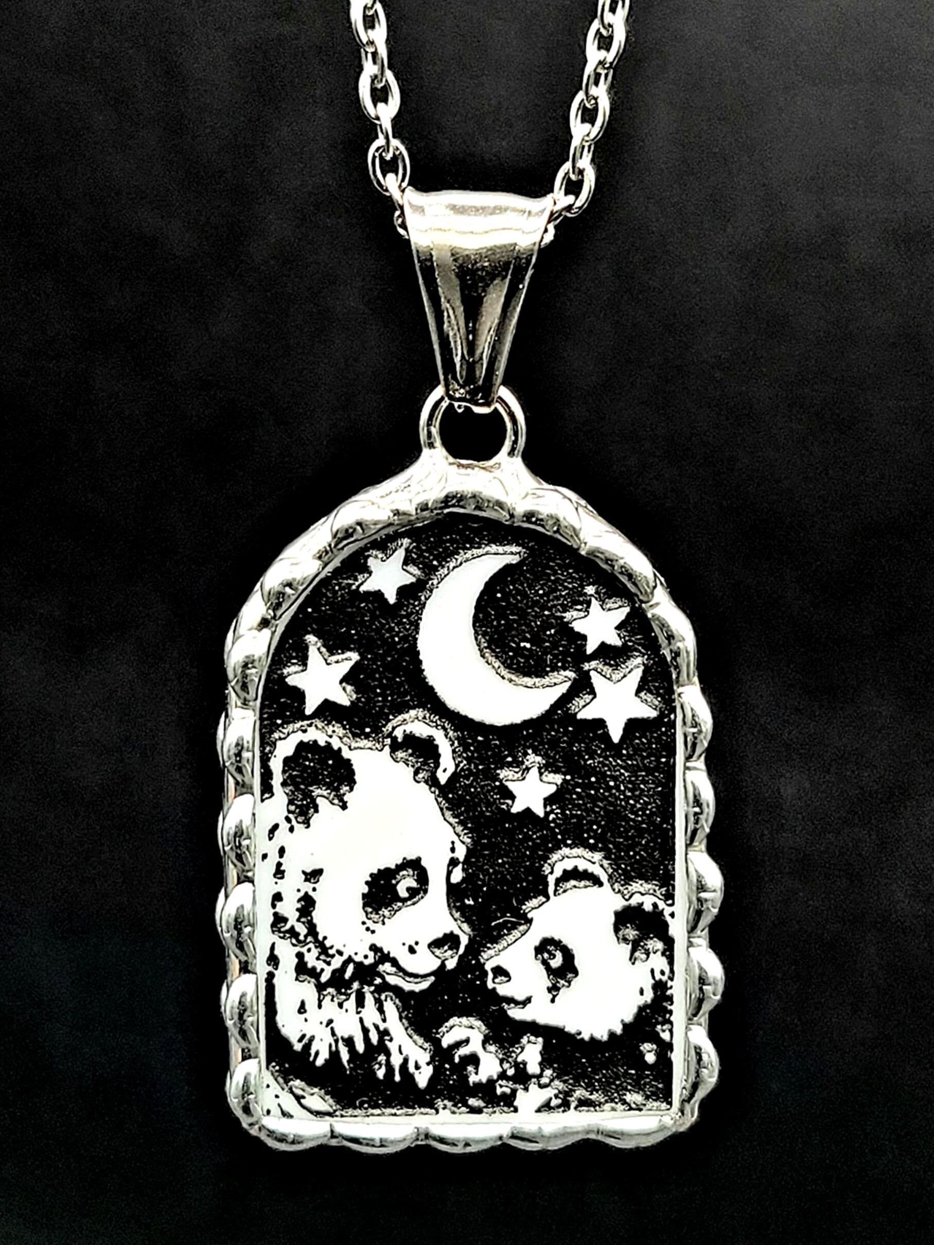 パンダ panda 上野動物園 夜景 星 月 窓 ネックレス ペンダント