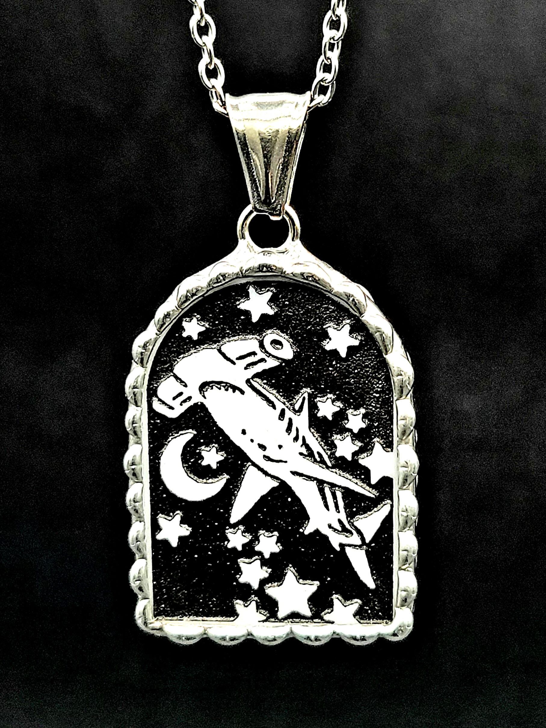 シュモクザメ, サメ, 鮫, 神秘, ユニーク, 海, アカシュモクザメ, ハンマーヘッドシャーク, hammerhead shark, 頭, 魚, 夜景, 星, 月, 窓, ネックレス, ペンダント, 白, ホワイト, 黒, ブラック, B&W, ガラス, クリア, シルバー, 銀, 一点物, ハンドメイド, ギフト, 贈り物, お祝い, プレゼント, 幻想, ファンタジー, シュール, 作家:若林真耶(マヤズワークス、mayasworks)