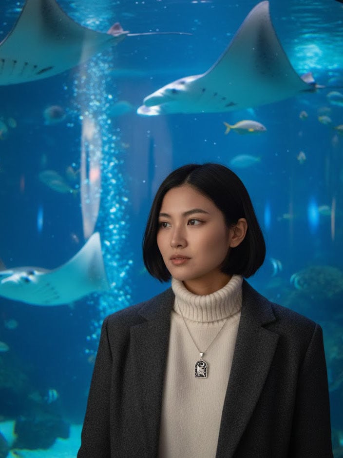マンタ, オニイトマキエイ, ナンヨウマンタ, エイ, Manta Ray, 神秘, ユニーク, 海, 泳ぐ, 鰭, 模様, 夜景, 星, 月, 窓, ネックレス, ペンダント, 白, ホワイト, 黒, ブラック, B&W, ガラス, クリア, シルバー, 銀, 一点物, ハンドメイド, ギフト, 贈り物, お祝い, プレゼント, 幻想, ファンタジー, シュール, 作家:若林真耶(マヤズワークス、mayasworks)