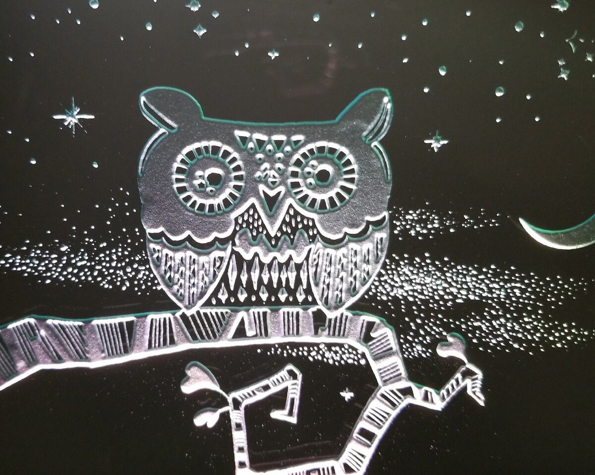 【検索用タグ】 バースデー, アニバーサリー, ウェディング, ムービング, ギフト, プレゼント, ランプ, エッチング, フクロウ, スター, ムーン, ツリー, ライト, 照明, birthday, anniversary, wedding, moving, gift, present, lamp, animal, church, night, glass, etched, owl, stars, moon, tree / 作家:若林真耶(マヤズワークス、mayasworks)