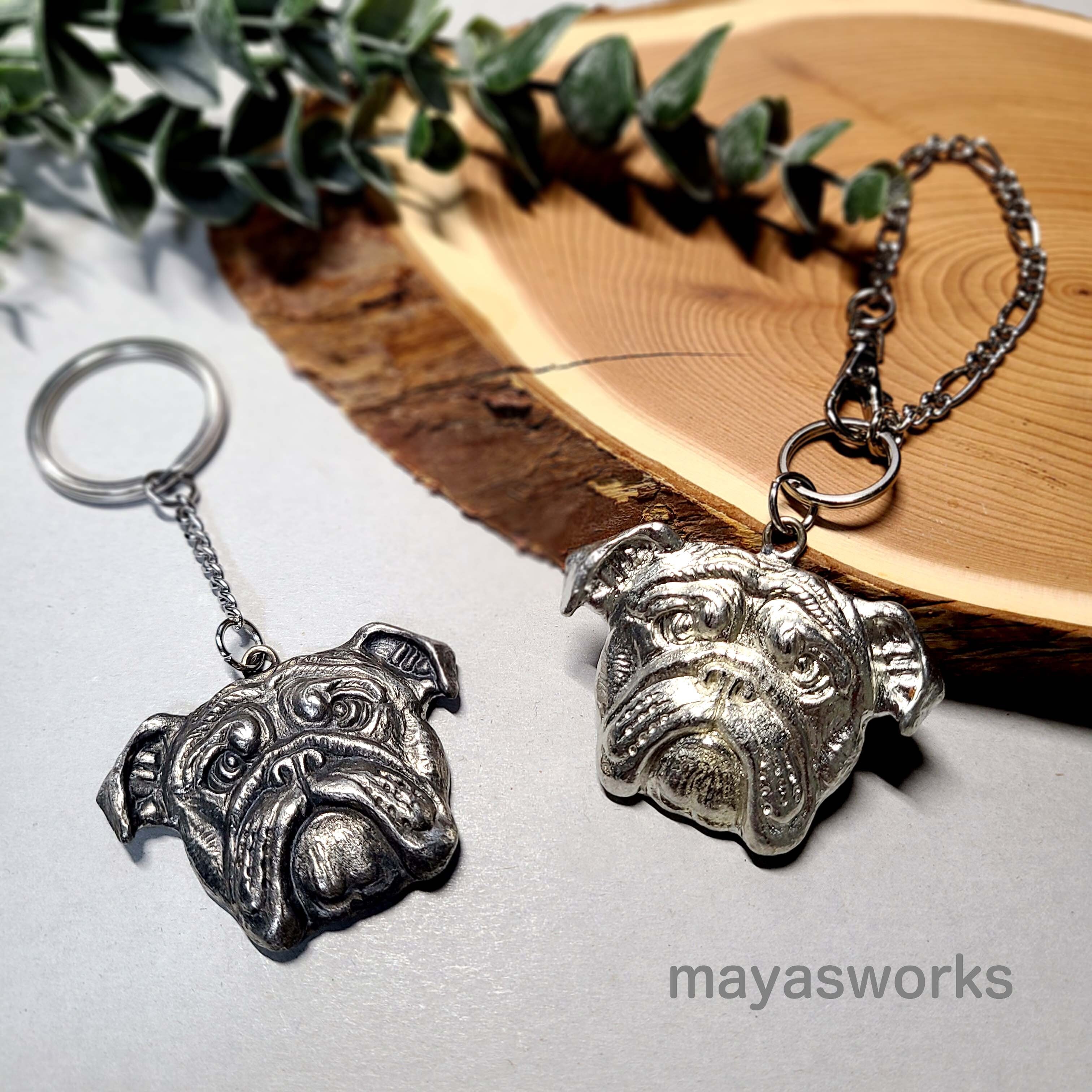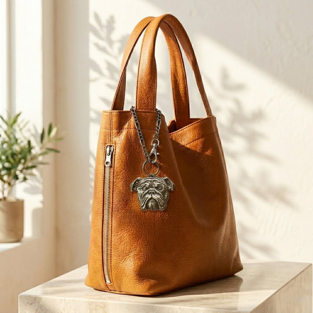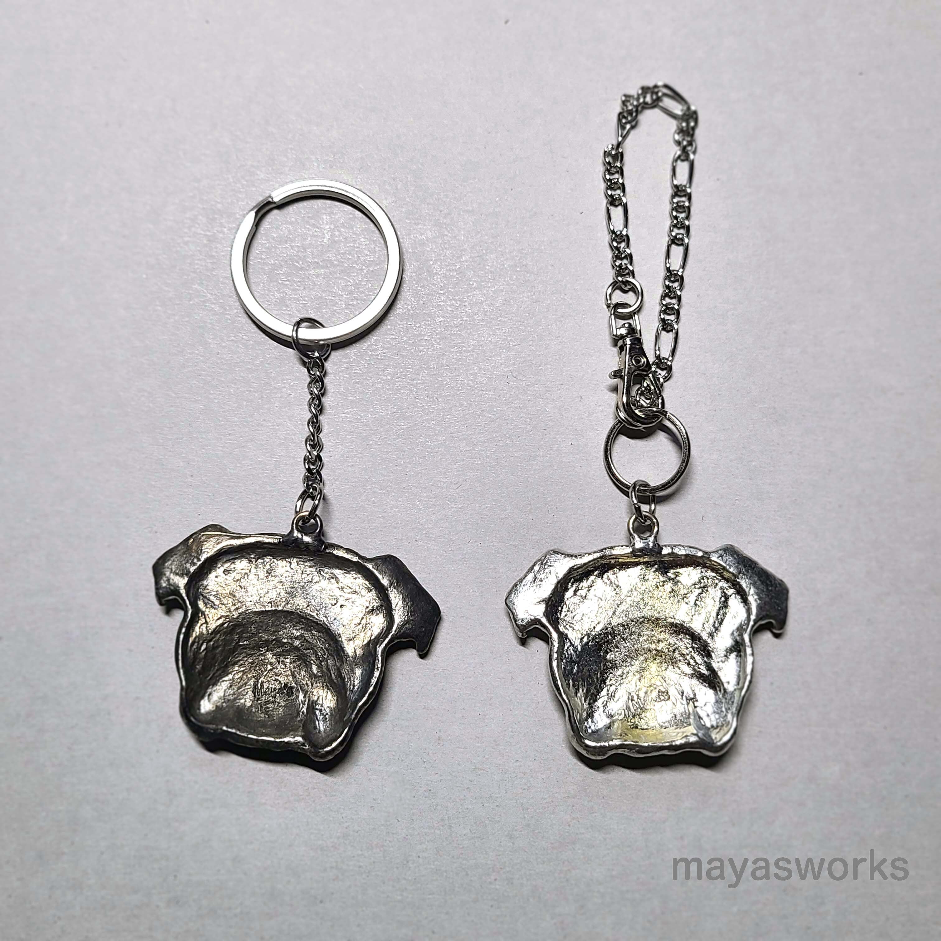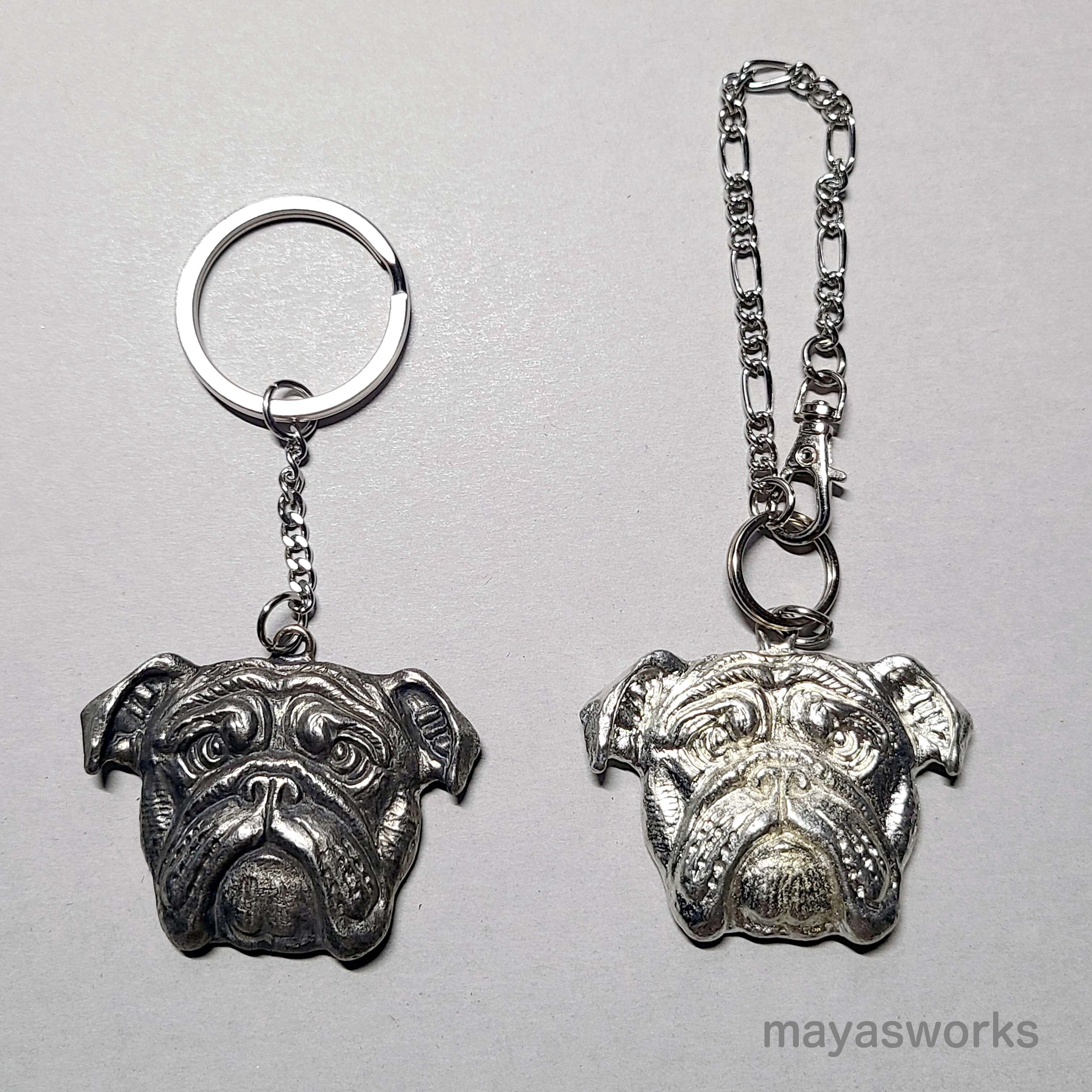 【Metal Drawing】 No.002 イングリッシュブルドッグ・キーホルダー、バッグチャーム アンティークORシルバー