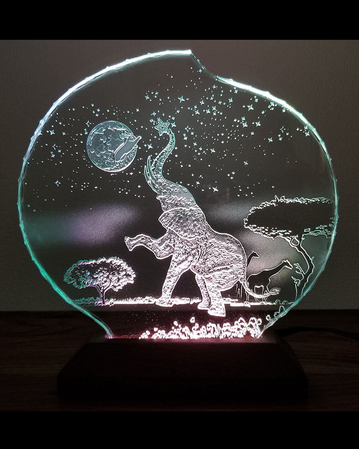 【検索用タグ】 象, ゾウ, ぞう, エレファント, elephant, キリン, 麒麟, ジラフ, giraffe, サバンナ, アフリカ, 月ウサギ, 月にいるウサギ, 星の受け渡し, バースデー, アニバーサリー, ウェディング, ムービング, ギフト, プレゼント, ランプ, エッチング, スター, ムーン, ツリー, ライト, 照明, birthday, anniversary, wedding, moving, gift, present, lamp, animal, stars, moon, tree, night, glass, etched,