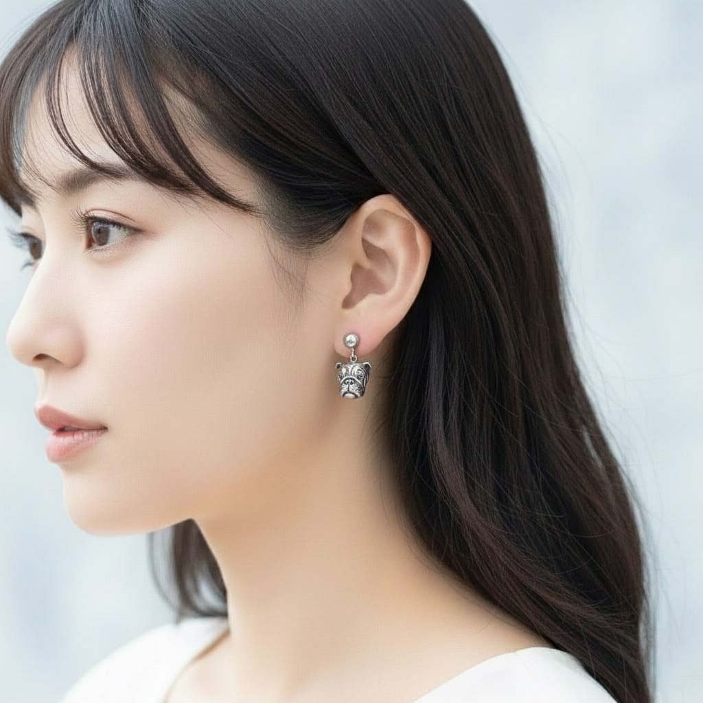 Silver925製のイングリッシュブルドッグのモチーフを使ったイヤリング作品です。