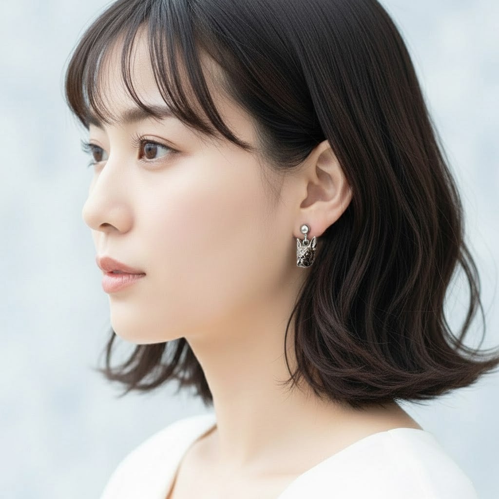 造形へのこだわり: この作品は、作家によるハンドメイドの原型を基に制作されています。ボストンテリア特有の愛らしい表情や凛とした立ち姿の雰囲気を細部まで表現し、大人のカジュアルスタイルに個性を添えます。